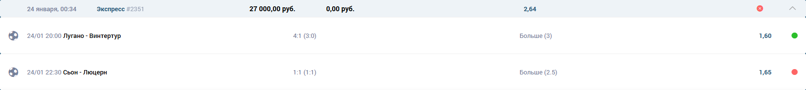 Футбол Чемпионат Швейцарии \ Винтертур - Лугано ТБ 2.5