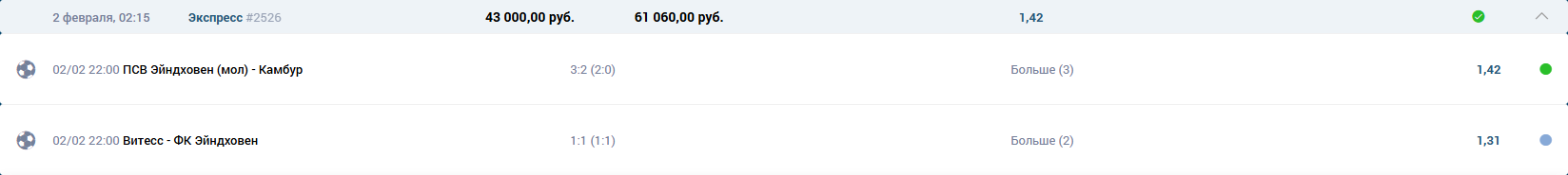 Футбол Кубок Нидерландов \ Неймеген - ПСВ Эйндховен ТБ 2.5