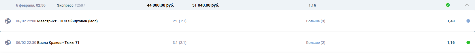 Футбол Чемпионат Нидерландов 1й дивизион \ Маастрихт - ПСВ Эйндховен (мол) ТБ 3