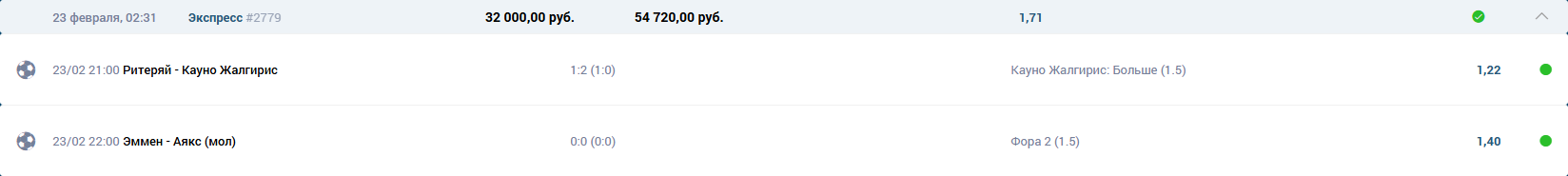 Футбол Чемпионат Литвы \ Ритеряй - Кауно Жалгирис : Кауно Жалгирис забьёт больше (1.5)